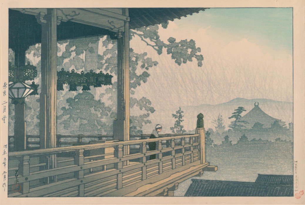 Kawase Hasui (1883–1957) was a renowned Japanese woodblock print artist and a leading figure of the Shin-hanga (“new prints”) movement, which revitalized traditional ukiyo-e techniques in the early 20th century. Hasui is celebrated for his tranquil and atmospheric landscapes, especially those depicting rural Japan, seasonal transitions, and quiet urban scenes. His prints often feature temples, snow-covered villages, rivers, and streets under soft rain or moonlight, rendered with exquisite attention to mood, light, and detail.