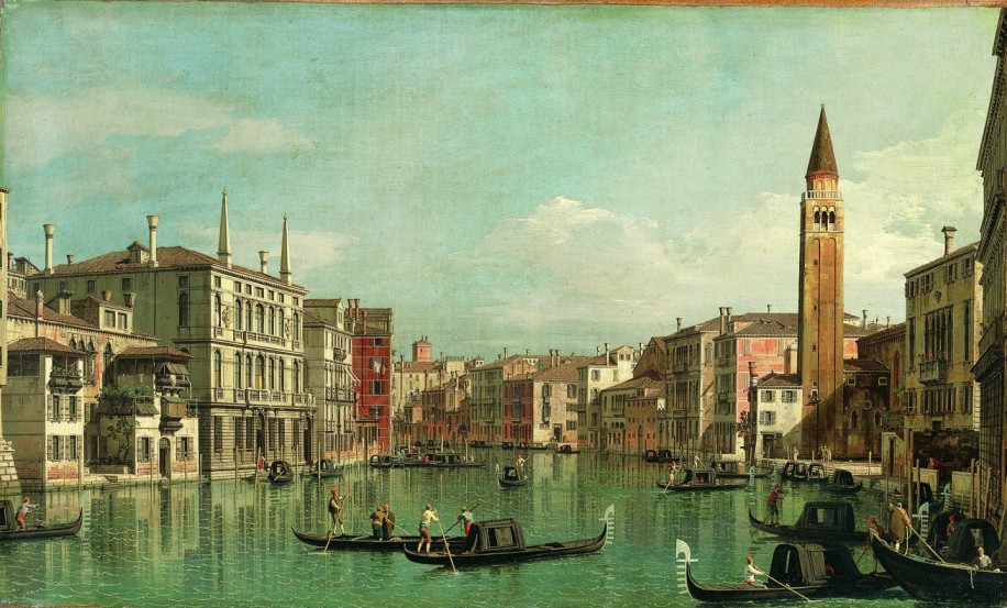 Canaletto (real name: Giovanni Antonio Canal, 1697–1768) was an Italian painter best known for his luminous, highly detailed views of Venice, making him one of the foremost vedutisti (view painters) of the 18th century. Born and trained in Venice, Canaletto initially worked alongside his father, a theatrical scene painter, which influenced his later sense of perspective and stage-like composition. He quickly became famous for his panoramic cityscapes that captured the essence of Venice with striking precision and atmosphere.